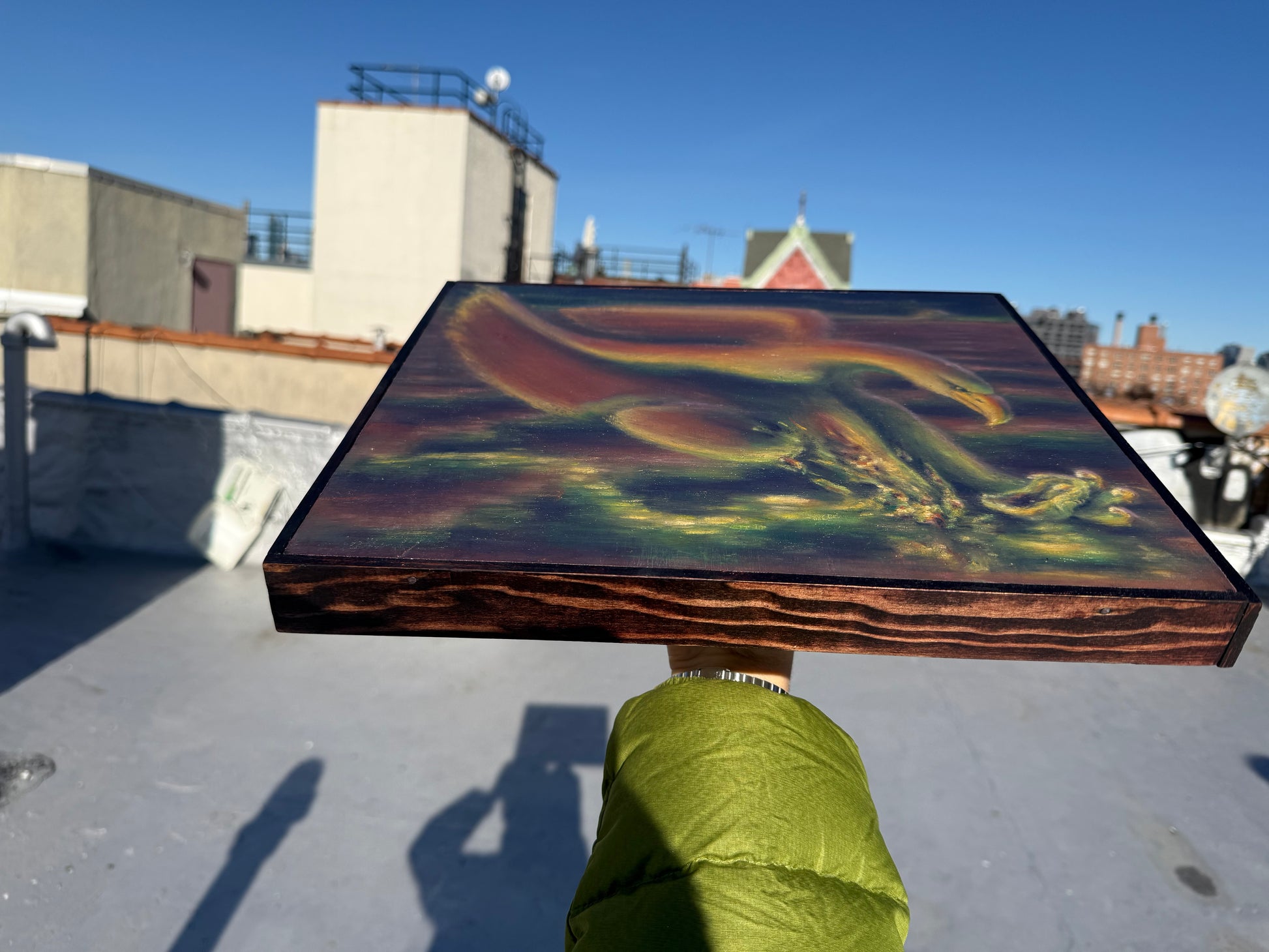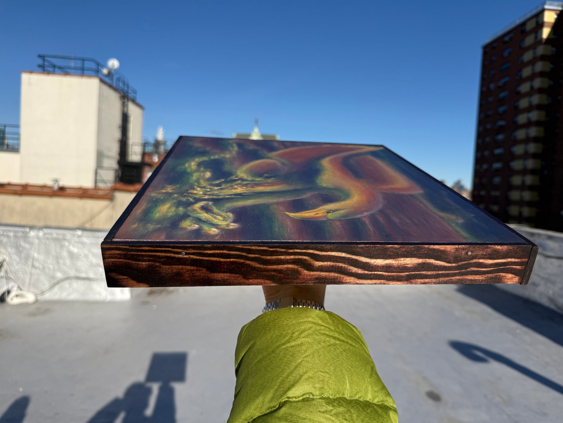 ~13x15x1.5" inch oil on ply panel, framed in stained pine
