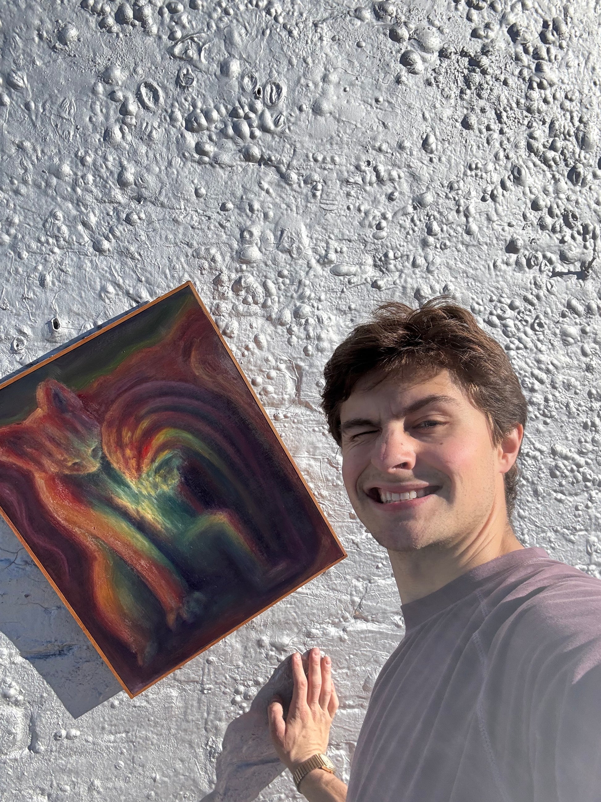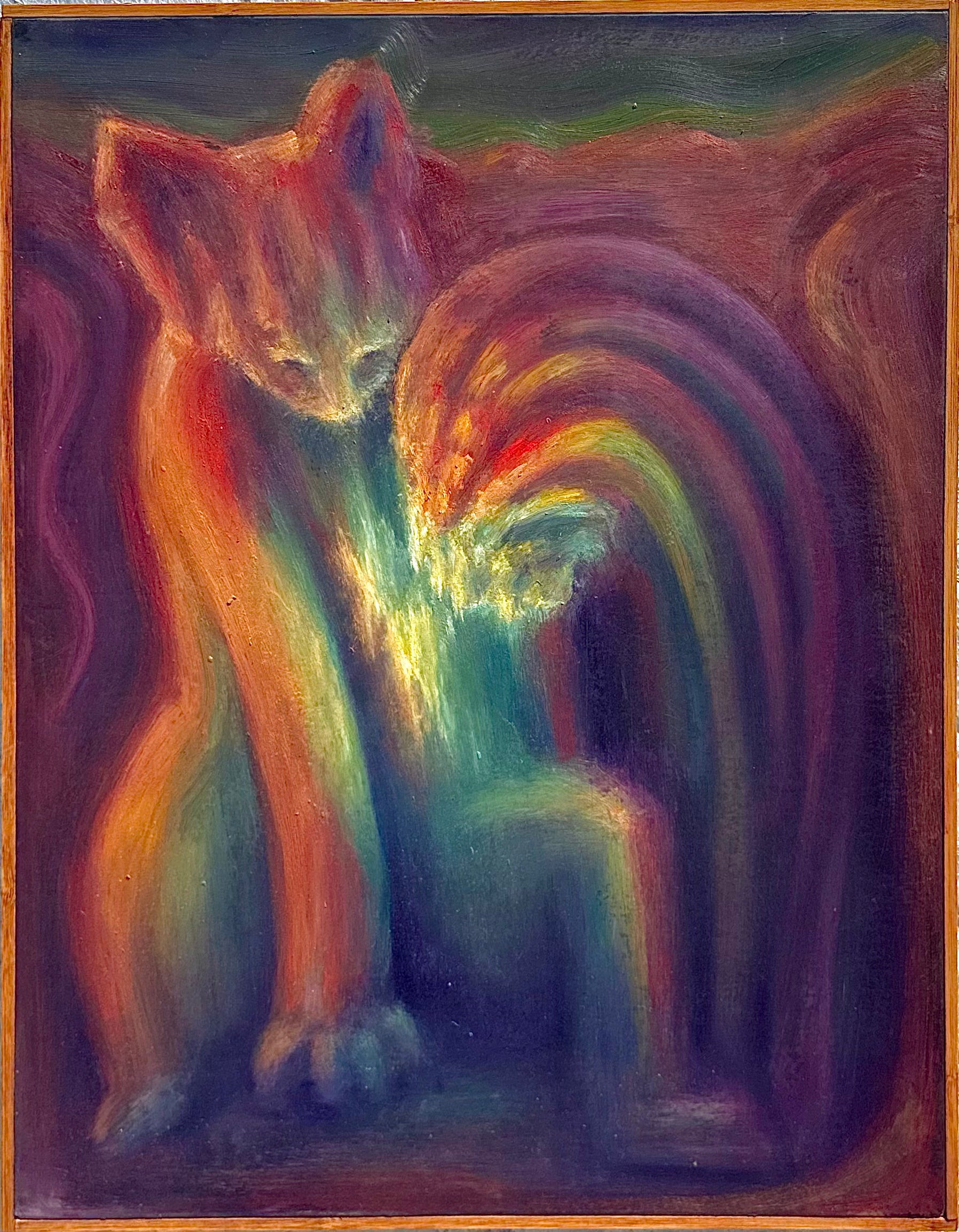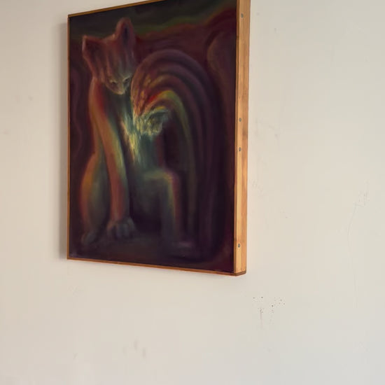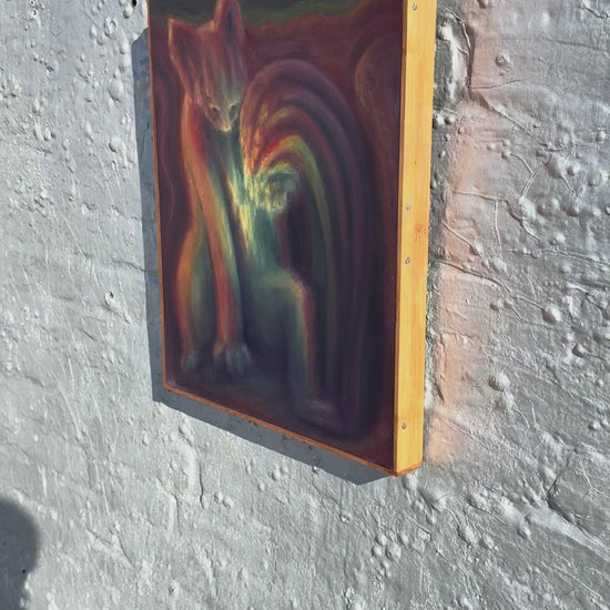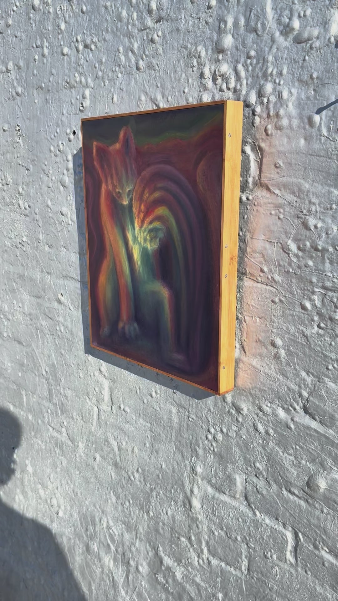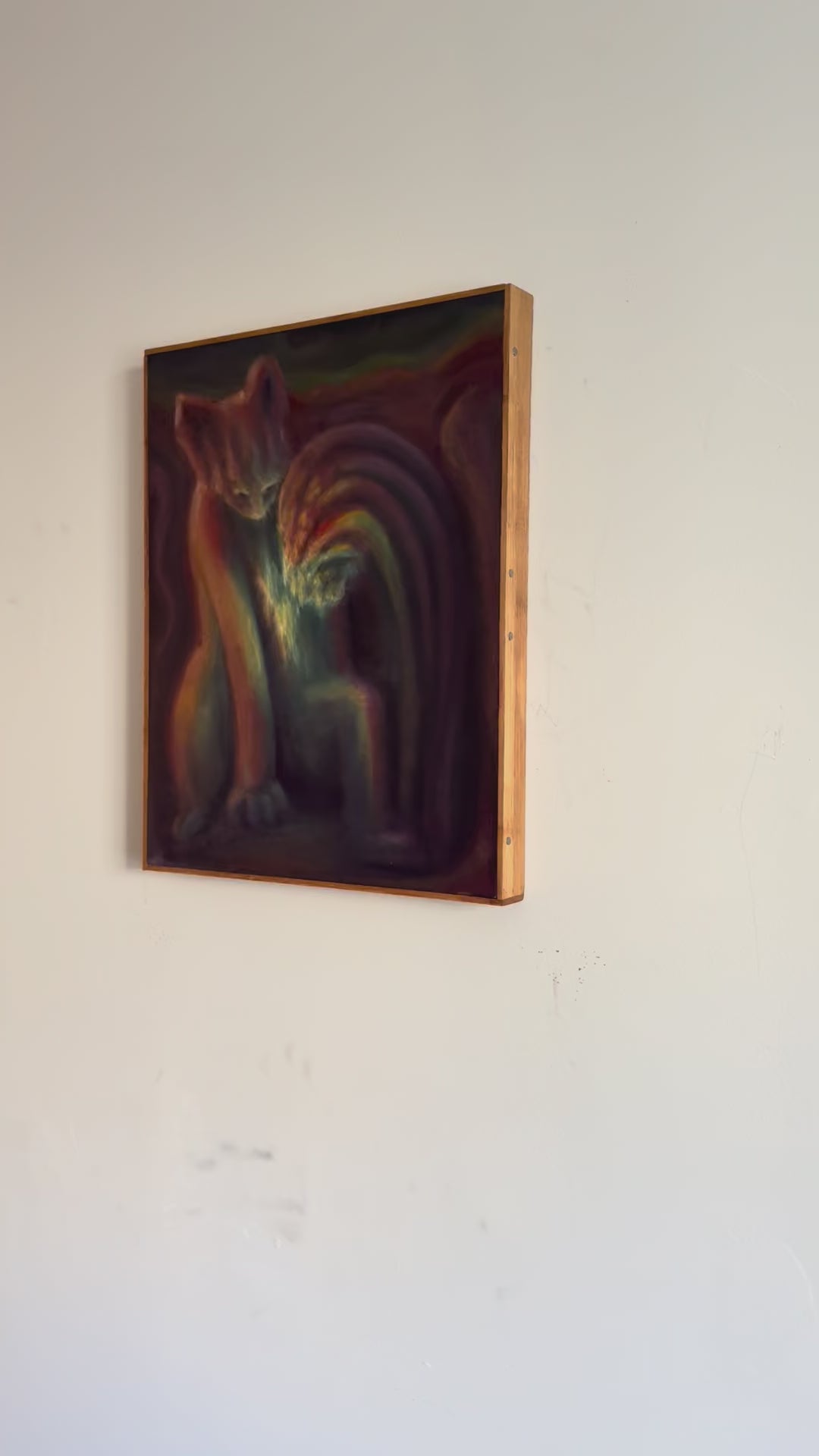~19x15" inch oil on primed panel, framed in a nailed bamboo (both found)